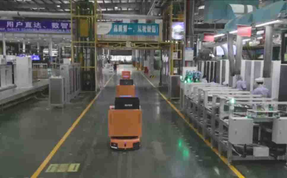 为车载冰箱物流配送打造的智能解决方案,,,,包含产中物流通过潜伏举升AMR搬运至线边,,,,产后成品物流智能仓储,,,,流程包含产中物流智能齐套入库,,,,线边安灯叫料AMR智能配送至线边,,成品入库、、、、出库,,通过无人堆高车机器人,,,,智能仓储管理替代人工作业管理,,,,实现更高存储、、、更高效率、、、、更具柔性化的解决方案。。。。